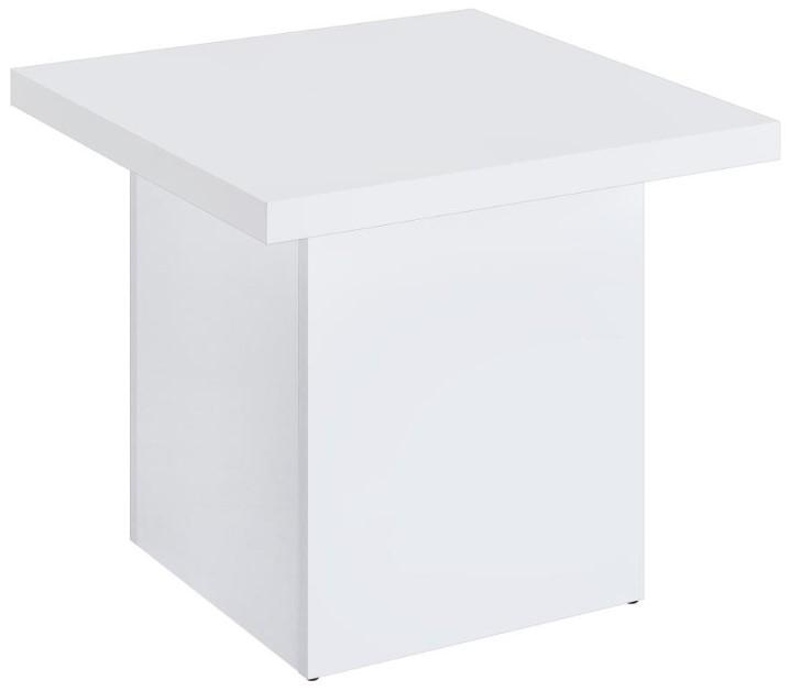 Striking in its simplicity, this end table blends sculptural form with a sleek white polyurethane high gloss finish. A thick square top rests on a wide plinth base, creating a clean architectural silhouette. The reflective surface adds brightness to any setting.Read More
