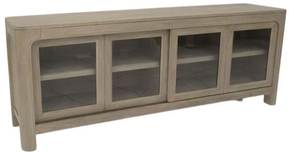 With its balanced proportions and sculptural form, this TV stand merges graceful design with everyday utility. Arched detailing softens the wide frame, while dual sliding glass doors reveal interior shelving for components and decor. Built-in cable cutouts keep wires neatly tucked away.Read More