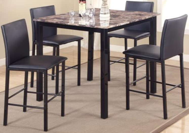 Bring a casual yet stylish dining set with the 5-piece Aiden Dinette set to your eat-in kitchen or dining area. It includes four counter stools with seats upholstered as well as a pub table. The square-shaped pub table features a lovely faux marble table top as well as tapered legs.