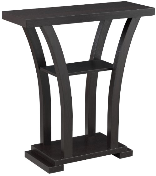 The Crown Mark Draper Console is a sleek and stylish piece of furniture that will elevate any living space. With its modern design, two shelves, and versatile black finish, this console is perfect for storing your favorite items or displaying your home décor.Read More