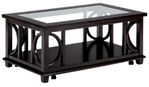 The Panama Occasional collection boasts a striking design with half-circle base detail and tempered glass top inserts. The tables are finished in a dark, rich color that highlights the wood grain and complements any decor style.Read More